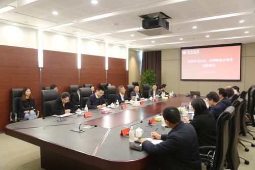 12月23日下午,市司法局副局長劉益良、市律協監事長王建明一行到集團調研公司律師和涉外法律服務工作開展情況,集團黨委副書記、總裁華偉榮,集團風控法務部負責人參加座談。